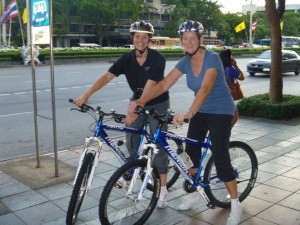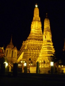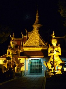 Mom and I came through Bangkok- she needed to see the dentist and I was starting guide training…we had one night together in Bangkok! I decided an adventure was in order so we booked a Night Bike Tour with Grasshopper Adventures. The tour starts in the Old Town area, near Khao San Road. You ride through the streets and along the river and then cross to the far side of the river by ferry. Once there it’s a much easier ride with a lot less traffic and none of the heart stopping moments of riding in town. We rode to Wat Arun, the temple of Dawn. While I know the temple looks beautiful at sunrise it looks absolutely stunning at night. A group of monks was busy decorating the temple walls, but other than them it was empty and we were able to enjoy the temples quietly on our own. From here we rode along the river and over the bridge to visit the amazing flower market. At night this market literally takes over street blocks and the amount of flowers is mind blowing! Last stop was Wat Pho temple where the Reclining Buddha sleeps. We were a little late for him, but saw the temples lit up; it was stunning, the temperature was cool and we were the only people there, a great way to see it!