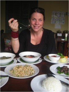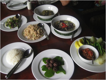 Since I hadn’t eaten there before I went for the set menu of the Ethnic Feast. Please note that this is NOT for a single person! It is more than enough for two (maybe even three). The dishes were similar to a lot of traditional Lao food that I have already eaten, but with an ethnic twist. The food was authentic, simple and tasty. Like many of the restaurants in town that are catered for foreigners it was hesitant on the spices. I like my food spicy so that was the only thing I felt was lacking from my meal. My favorite dish was the Hmong Pork Belly with Leafy Greens. I know, it sounds a little scary, but it is actually not. It is stewed pork with mustard greens. I felt like I was back at home in the south eating collard greens with pork! I also loved the meatballs and fried rice. The rest of the menu was good as well, nothing I didn’t like.