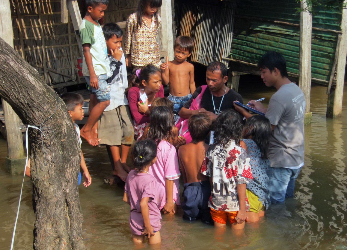 The heavy rains have stopped for now and the flooding is going down. However, the drainage around Tropeang Ses village is still blocked and the area is still severely flooded, with water levels above the knee as there is nowhere for the water to drain to.