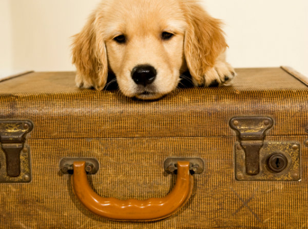 9 week old Golden Retriever puppy with a packed red handkerchief on a stick