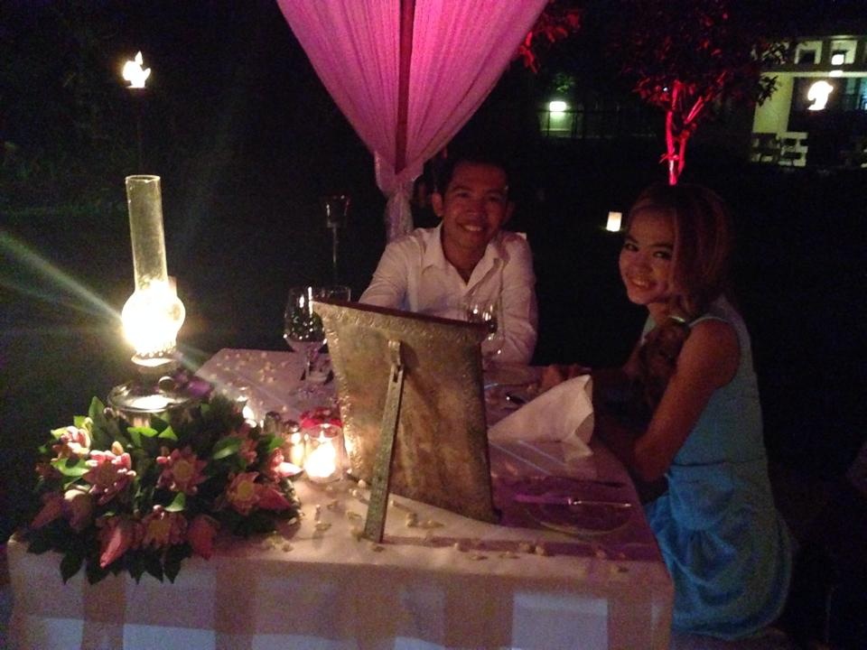 The dinner is just for two of us in spice garden at the Raffle Grand Hotel d’Angkor’s property — one of our favourites in SIem Reap. They set up an incredible with table, chair, light, flower, music and more. The staff was amazing and I can’t describe enough about the feel of our experience while we there.