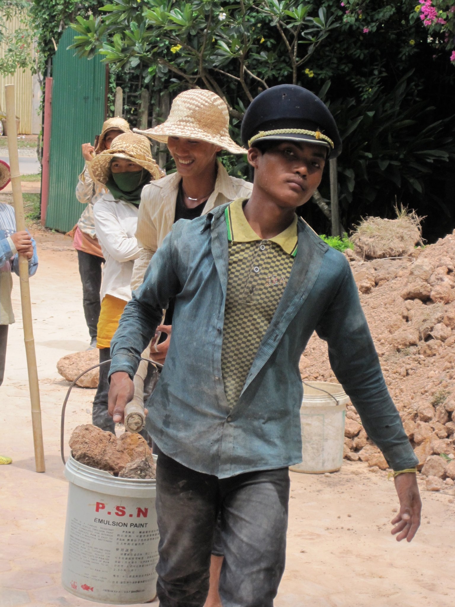 The ever so stylish construction crew hard at work on the new bungalows at Journeys Within Boutique Hotel.