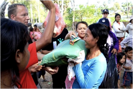 Aebe Christian De Boer - Hotel de la Paix Director of Sales Manager - handing out supplies to flood victims