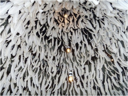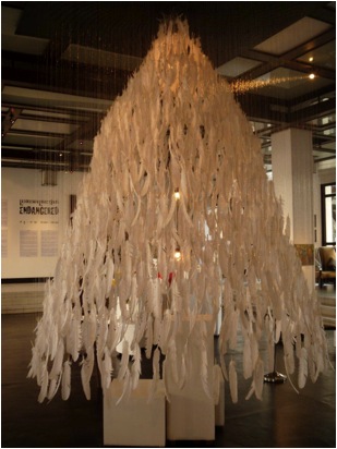 A beautiful tree made of feathers hung in the Arts Lounge