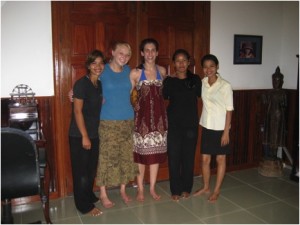 After a couple words in Khmer, the volunteer in the middle spoke English: “Fish!” and the circle erupted into movement—sucking noises, pouty lips and hollowed cheeks, and flapping arms walked around, one behind the other. Then the elephant, swinging arms and shouts, and then the dog, panting and barking and wagging tails. This continued for a couple more animals and then it was time for Head, Shoulders, Knees, and Toes. It’s been a while since most of us ladies have done the dance; I’m pretty sure the kids had it down better than we did. We went straight from that to the Hokey Pokey, children and