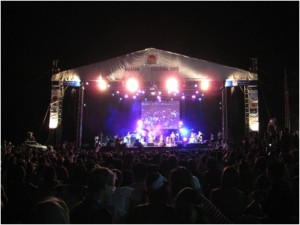 Arriving at the festivalThe main stagePeople set up picnics at the beach to watch the showThe beach during the day - no more people!